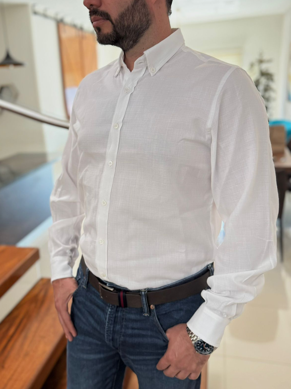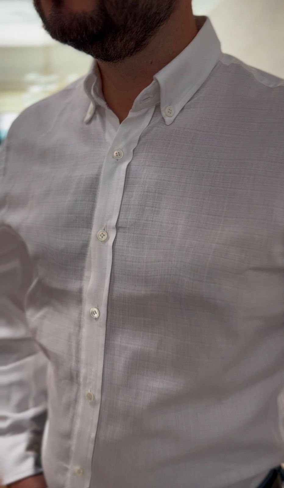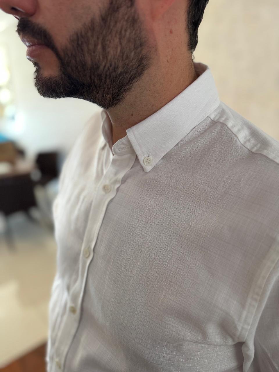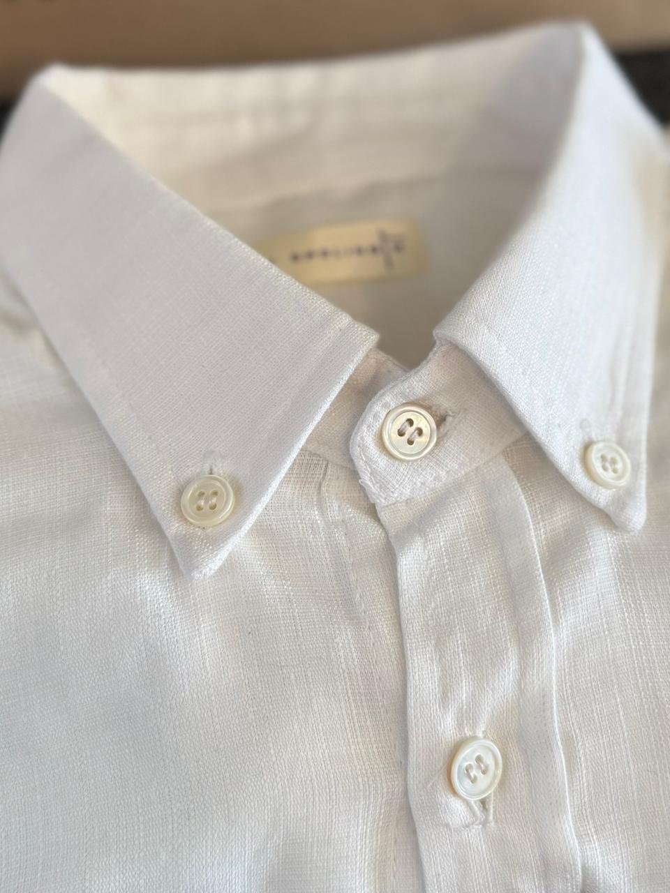 Camisa de algodón de bambú blanca y botones de concha nácar