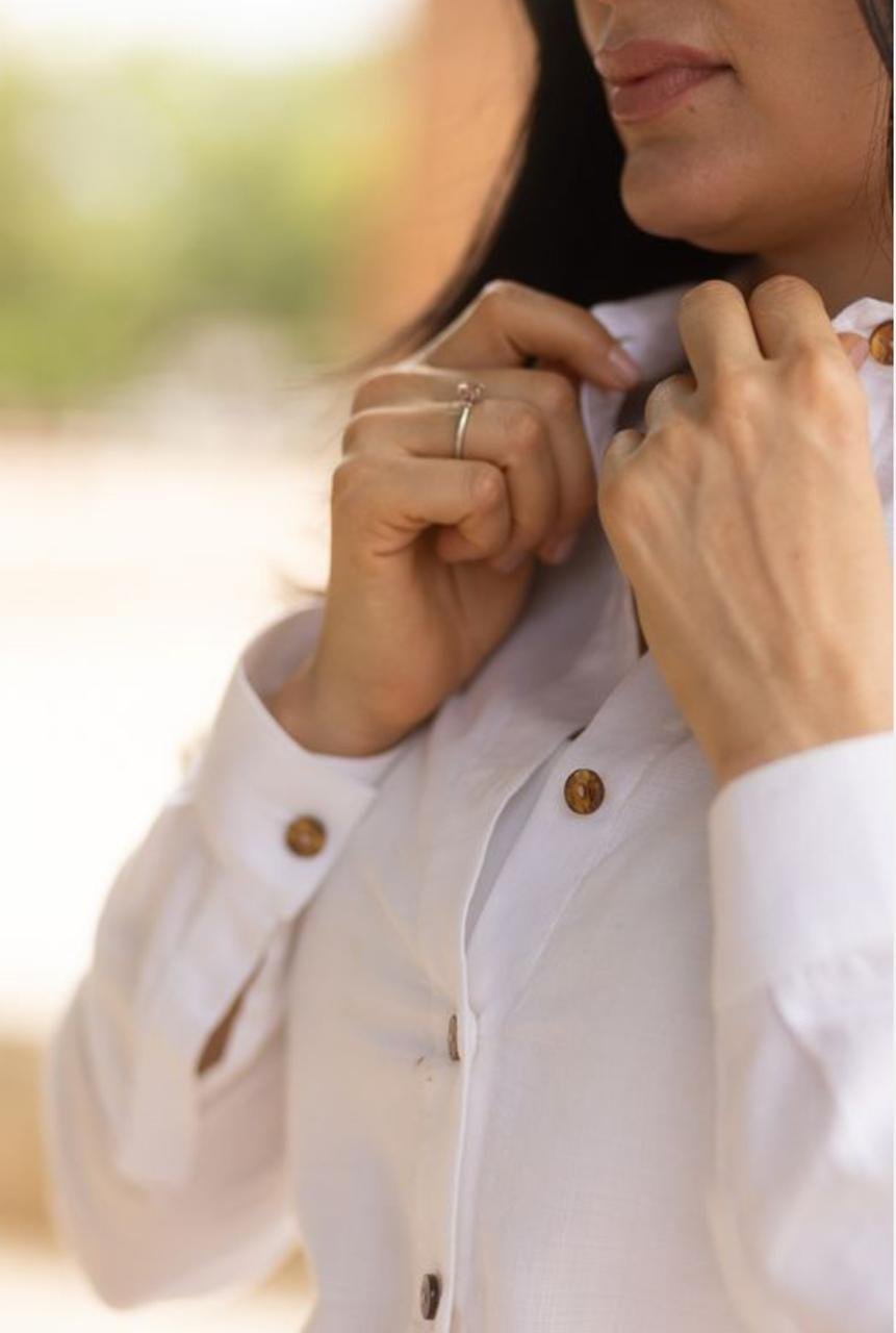 Camisa de algodón de bambú y botones de ámbar para mujer