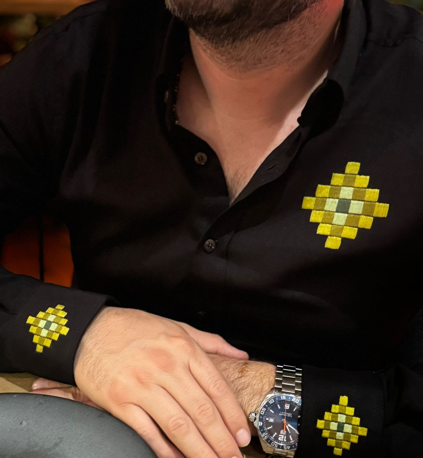 Cada camisa está bordada a mano por artesanas de Palenque, Chiapas, con técnica Cho’l de la región selva, preservando un legado ancestral en cada puntada.